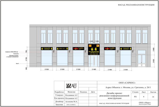 Процесс проектирования вывески разбивается на несколько этапов. К основным этапам проектирования указанной рекламной конструкции относятся: