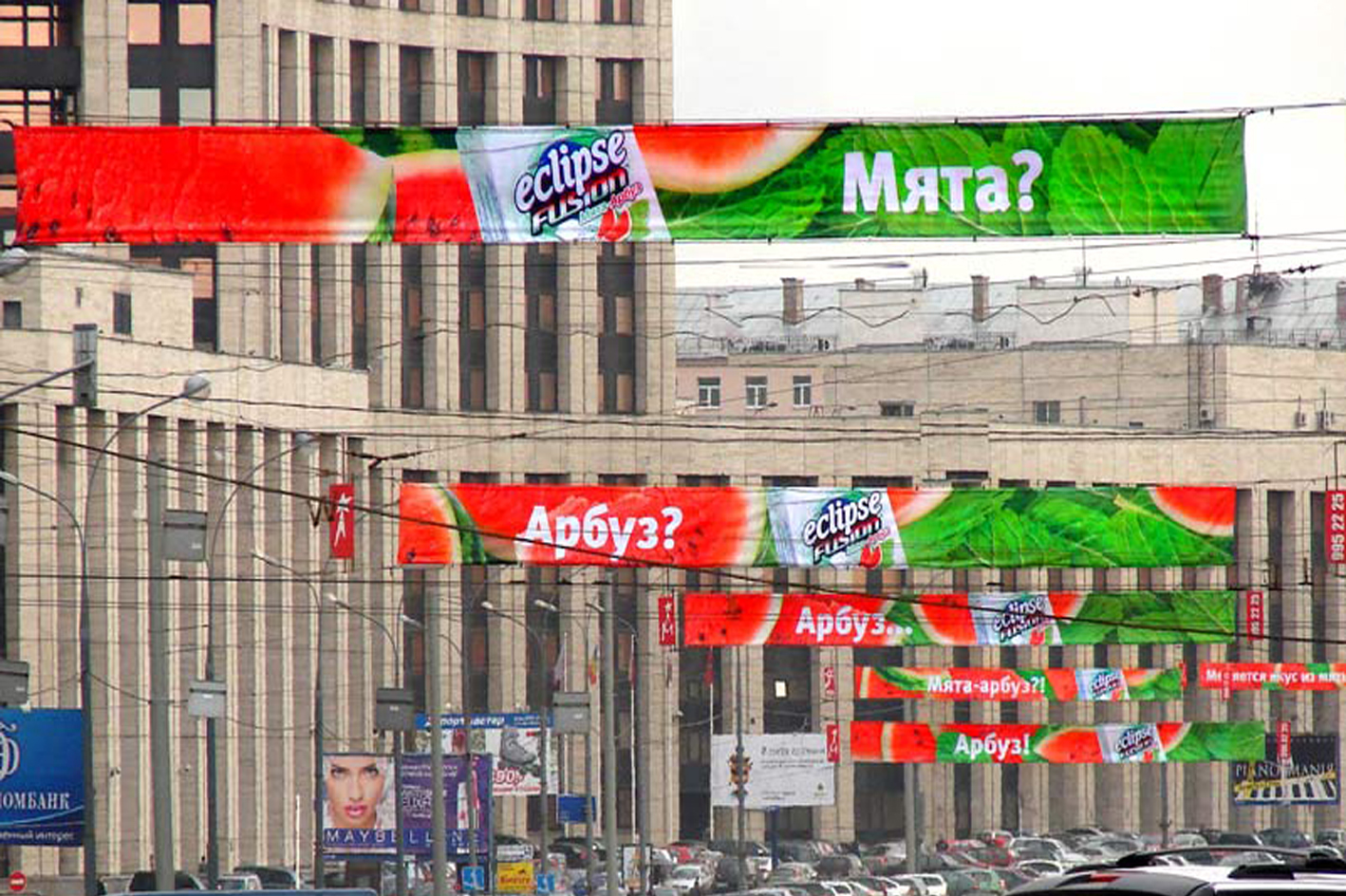 в-четвертых, размещение рекламы на перетяжках представляет собой экономию как денежных, так и временных ресурсов. Реклама на перетяжках может использоваться как самостоятельный вид рекламной активности. Данный факт означает, что рекламодатель может не тратиться на иные виды наружной рекламы. Реклама на перетяжке отлично справляется не только в качестве основного, но и единственного вида рекламы.