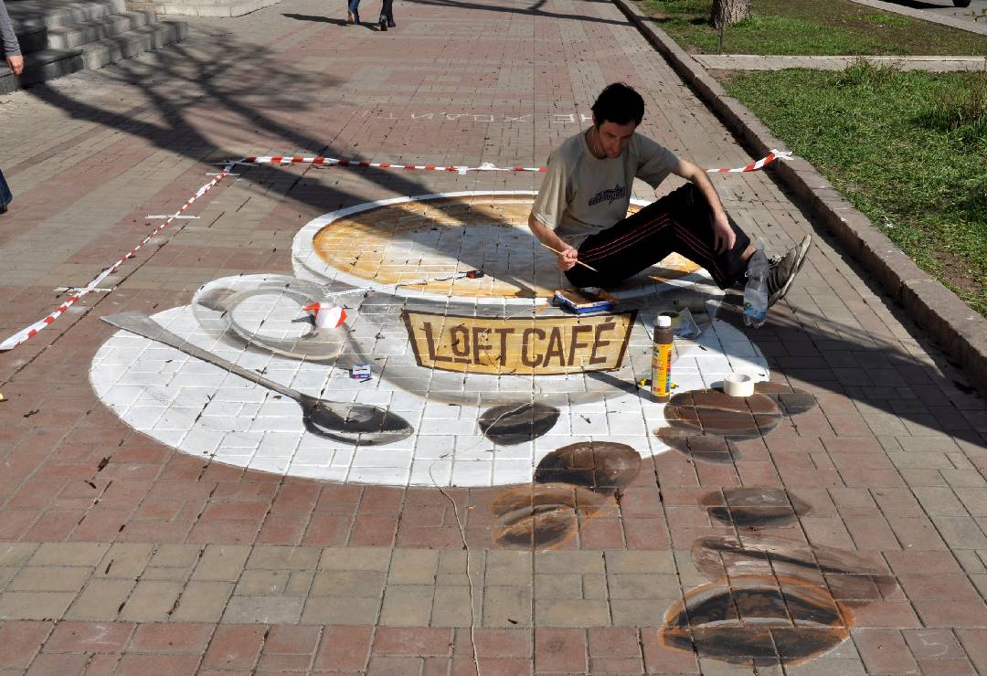 Многие клиенты нашего рекламного агентства спрашивают: каким образом происходит нанесение рекламного изображения на асфальте? На этот вопрос мы отвечаем, что нанесение рекламы на асфальте осуществляется при помощи трафарета и балончика с красокй. В работе мы используем специальные влагоустойчивые материалы, которые сохраняются на поверхности в течение продолжительного времени.