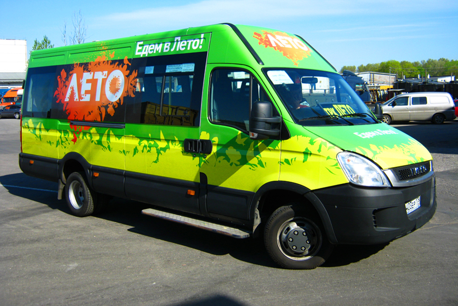 3) процесс брендирования (оклейки) маршрутки рекламой: