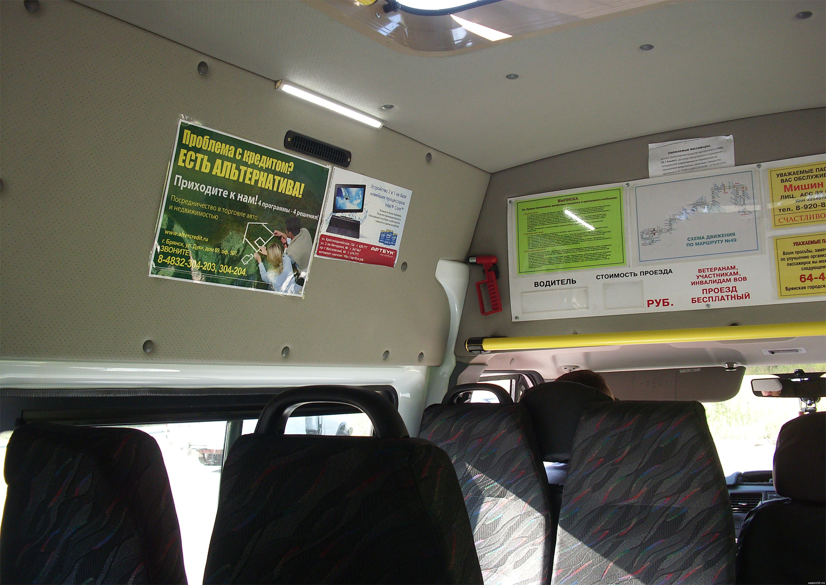 Рекламные стикеры в маршрутке на фото выше