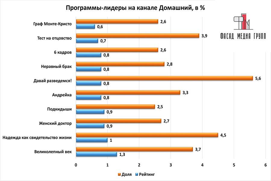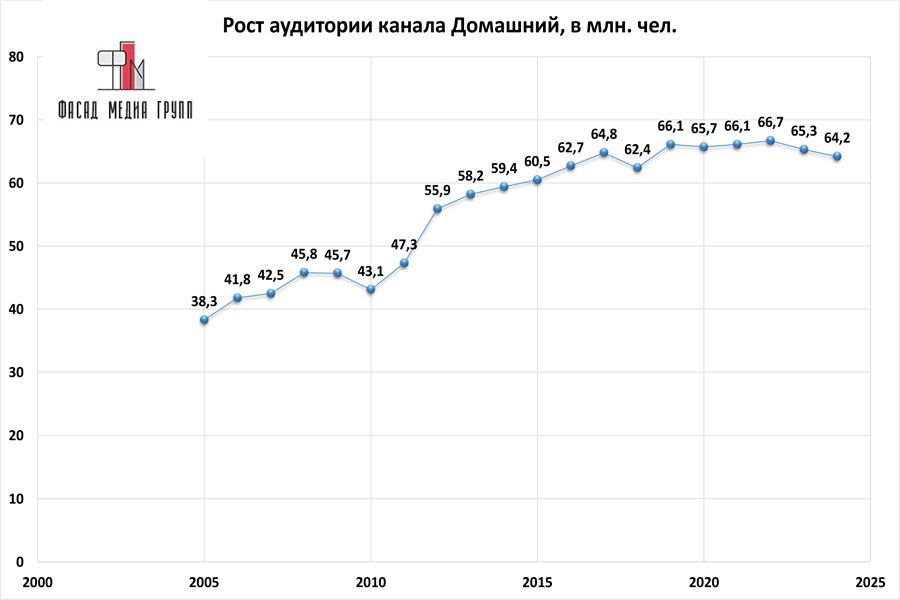 Популярность телеэфира на «Домашнем» приводит к ежегодному увеличению спроса на рекламное время. Для привлечения клиентов из разных регионов России, увеличения процента продаж, повышения имиджа компании и узнаваемости бренда – размещайте рекламу на «Домашнем». «Домашний» – это проверенный и востребованный канал для размещения рекламы на мичуринском ТВ. Для размещения рекламы на телевидении обращайтесь в рекламное агентство «Фасад Медиа Групп». Будем рады сотрудничеству.
