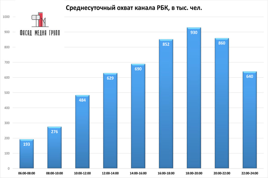 Популярность телеэфира на «РБК» приводит к ежегодному увеличению спроса на рекламное время. Для привлечения клиентов из разных регионов России, увеличения процента продаж, повышения имиджа компании и узнаваемости бренда – размещайте рекламу на «РБК». «РБК» – это проверенный и востребованный канал для размещения рекламы на мичуринском ТВ. Для размещения рекламы на телевидении обращайтесь в рекламное агентство «Фасад Медиа Групп». Будем рады сотрудничеству.