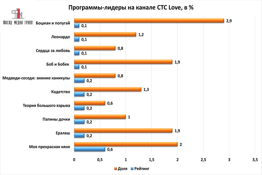 Популярность телеэфира на «СТС Love» приводит к ежегодному увеличению спроса на рекламное время. Для привлечения клиентов из разных регионов России, увеличения процента продаж, повышения имиджа компании и узнаваемости бренда – размещайте рекламу на «СТС Love». «СТС Love» – это проверенный и востребованный канал для размещения рекламы на мичуринском ТВ. Для размещения рекламы на телевидении обращайтесь в рекламное агентство «Фасад Медиа Групп». Будем рады сотрудничеству.