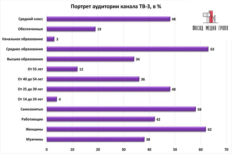 Благодаря качественному, сбалансированному контенту аудитория «ТВ-3» многочисленна и разнообразна.