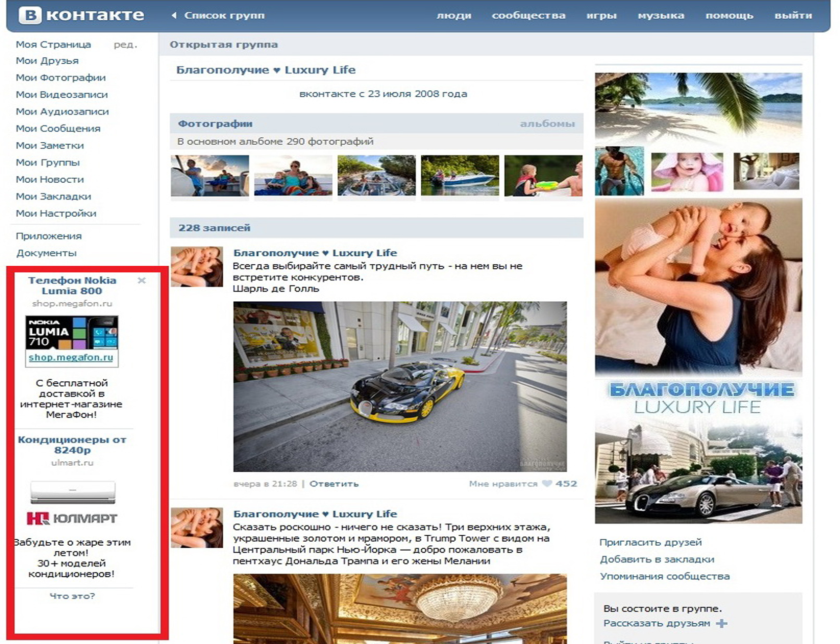 8) Реклама личной страницы ВКонтакте. Реклама личной страницы и записей на личной странице.
