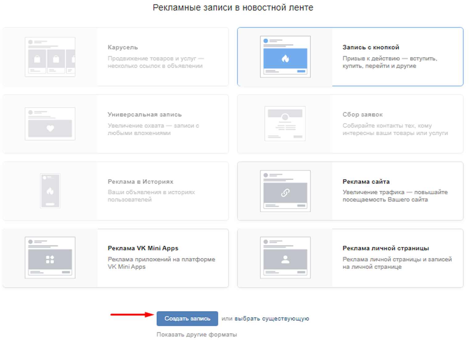 Платформа ВКонтакте предлагает пользователям различные рекламные форматы, ориентированные на достижение определенных целей рекламной кампании. К рекламным форматам ВКонтакте относятся: