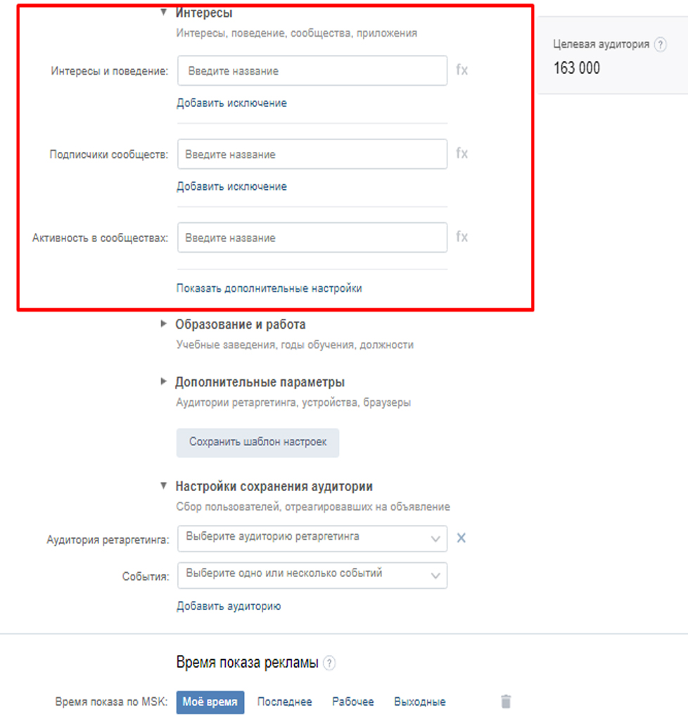 4. По целевой аудитории реклама в ВКонтакте бывает: