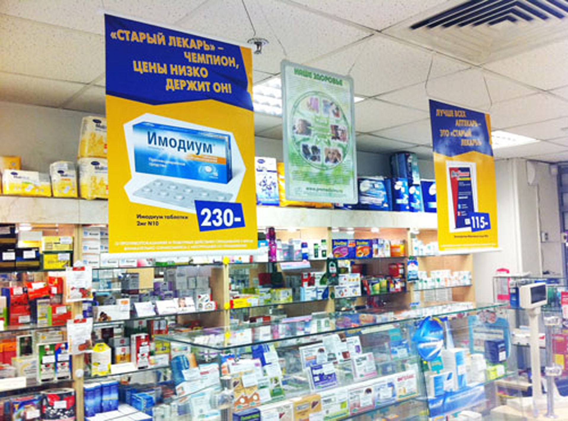 Монтаж рекламы в аптеках осуществляется по-разному в зависимости от того, какой рекламный материал размещается.