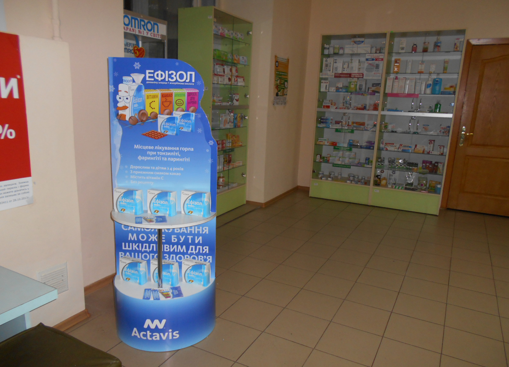 Пример рекламы в напольной конструкции в аптеках: