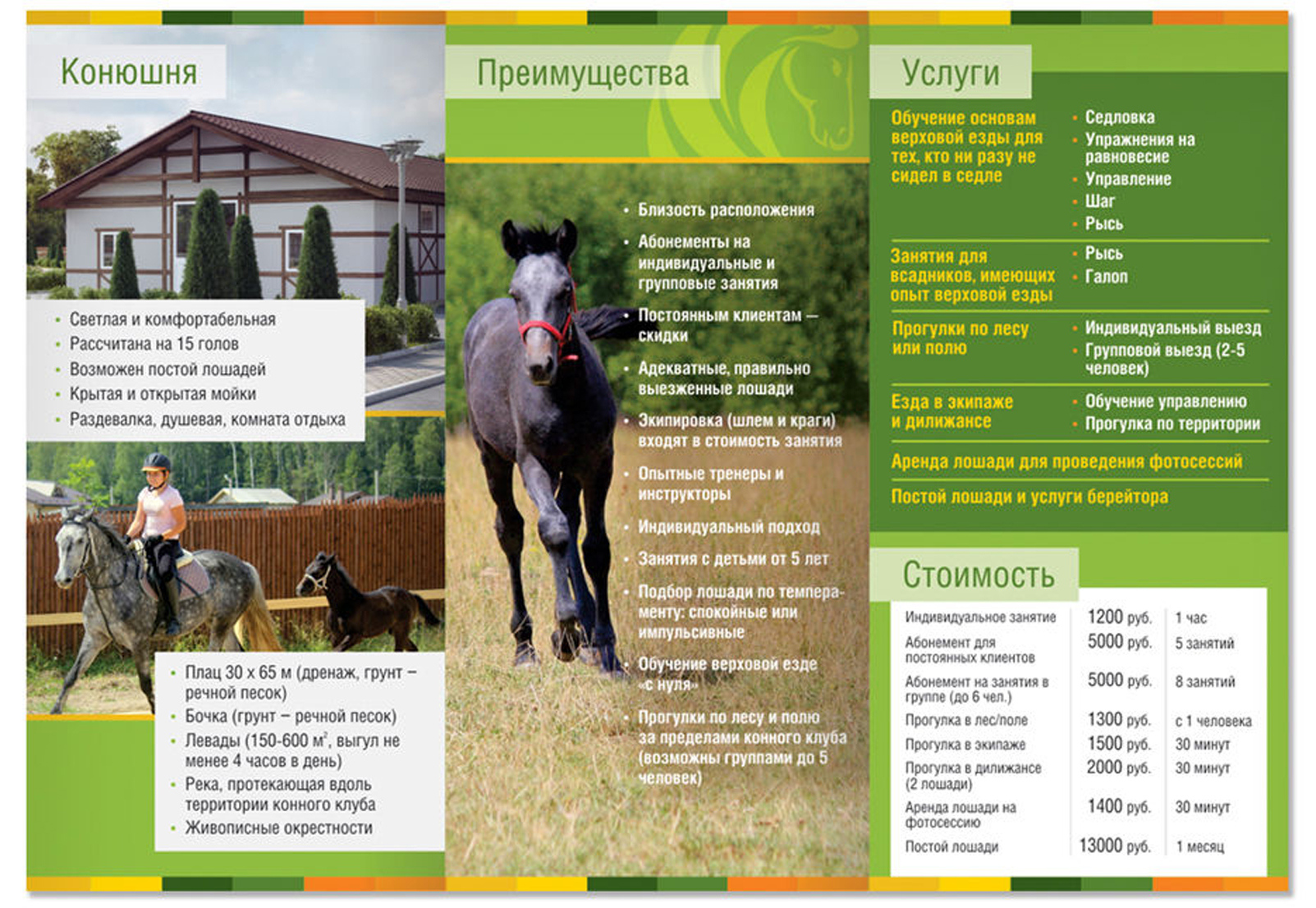 Обращаем внимание, что размещение рекламы в конных клубах включает в себя: