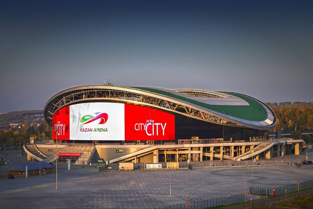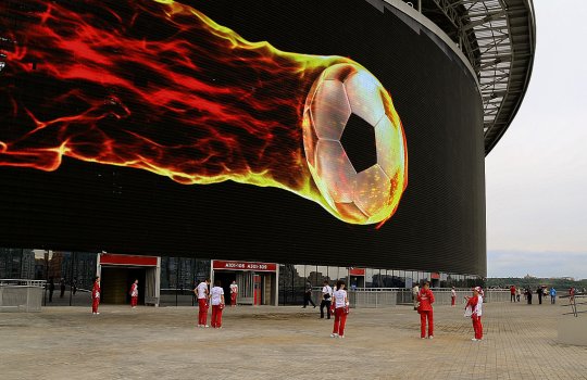 Пример рекламы на медиафасадах на стадионах: